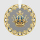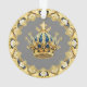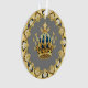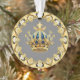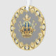 Une couronne dorée magnifiquement décorée avec des motifs complexes encerclés par un motif floral, symbolisant la royauté, le luxe et la célébration, sur un fond doux et neutre qui rehausse son élégance royale.