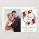 Couronne florale aquarelle bordeaux marsala Carte de remerciement de mariage avec photo