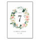Carte élégante de numéro de table de mariage avec une couronne de fleurs aquarelles en rose et blanc avec feuillage vert. Pour une personnalisation avancée de ce design, veuillez cliquer sur le bouton "Personnaliser". Des articles assortis sont également disponibles.