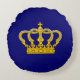 Belle couronne royale dorée sur Coussin rond bleu royal. Un cadeau idéal pour tous !