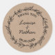 Merci autocollant avec une couronne de branche d'olivier rustique sur une image de papier kraft brun. Conçu pour compléter la collection de "couronne rustique".