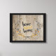 Fond en bois vieilli, une couronne de fleurs champêtres et un texte "home sweet home" dans une police moderne à deux tons donne à cette charmante toile imprimée tendue un look moderne et rustique.