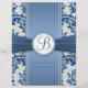 Royal leafy damask patent Monogrammed Wedding Dinner Menu Flyer. Note : Ribbon is the printed image. You can move ribbon and round frame up and down or simply remove them.