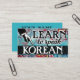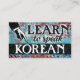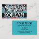 Art coloré Apprendre à parler carte de visite coréen en bleu turquoise, aqua, rouge, jaune. Carte de visite d'enseignement de la langue coréenne.