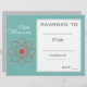 Un prix universitaire de classe d'école décerné avec l'image de thème de la science atomique en parfait pour encourager un jeune étudiant en sciences, physique ou chimie. Vous pouvez écrire dans vos propres détails. Une excellente ressource pour n'importe quel type de professeur de classe.
