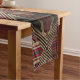 Un chemin de table élégant de style Art Déco avec des motifs géométriques orne une table en bois clair, ajoutant une touche d'élégance à la décoration de mariage. Les teintes riches et le design complexe soulignent le thème luxueux de la célébration.