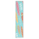 Ce design de planche de surf océanique présente des couleurs bleu clair, vert et rouge.