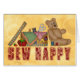 Le wordart coloré à Paisley rouge et blanc a modelé le matériel, et un graphique lunatique d'un ours mignon se reposant par un panier ouvert complètement des outils de couture. La conception parfaite pour le yarnoholics et les intoxiqués de couture !