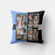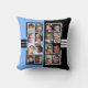 Personnalisez cet oreiller à lancer avec vos propres photos. Ce coussin est recto-verso avec les mêmes 16 photos à l'avant et à l'arrière. Conçu en noir et bleu avec rayures.