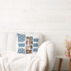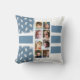 16 photo collage double face lancer oreiller / coussin Ajouter 8 photos sur l'avant et un autre 8 sur l'arrière. Blanc et bleu avec feuille et rayures.