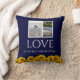 Chic tournesol Élégant bleu marine et blanc Écriture Collage photo mariage oreiller, avec un cadre sur un collage de 3 de vos photos.