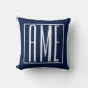 Coussin 3 Initiales Monogramme | Blanc sur bleu foncé mari