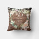 Doté d'une délicate guirlande florale aquarelle, de lampes à cordes et d'un arrière - plan de panneaux de bois rustique, ce coussin botanique chic 50e anniversaire mariage peut être personnalisé avec vos informations spéciales anniversaire dans un texte élégant. Conçu par Thisisnotme©