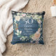 Doté d'une délicate aquarelle fleurie, de lampes à cordes et d'un arrière - plan de panneaux de bois bleu rustique, ce coussin botanique chic 50e anniversaire mariage peut être personnalisé avec vos informations spéciales anniversaire dans un texte élégant et votre photo au verso. Conçu par Thisisnotme©