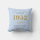 Coussin 70e anniversaire Nom 1952 Blue Grey Elegant Chic