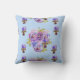 Coussin à fleurs de motif à pois floral bleu pansy shabby chic. Conçu à partir de mes propres œuvres d'art, peintures aquarelles romantiques.
