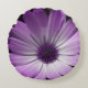 Ce magnifique coussin rond présente une photo magnifiquement détaillée d'une fleur de marguerite africaine. La photo a été numériquement modifiée, ce qui donne une jolie fleur de couleur violet avec différentes nuances de violet sur les pétales et un centre violet foncé.