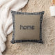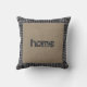 Coussin à la maison dans le plaid noir et bronzage avec l'arrière - plan de toile de jute