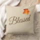 Cet oreiller de lancer est montré en couleur naturelle avec une impression texte Thanksgiving Blessed avec un joli accent de feuille d'automne. Customisez cet objet ou achetez tel que conçu.