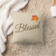 Cet oreiller de lancer est montré en couleur naturelle avec une impression texte Thanksgiving Blessed avec un joli accent de feuille d'automne. Customisez cet objet ou achetez tel que conçu.