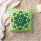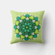 Coussin de mandala floral avec une fleur verte créée à partir d'une encre et aquarelle dessin botanique abstrait.