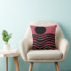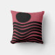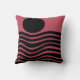 Cet oreiller de lancer a Bauhaus conception de lignes ondulées et cercles en noir sur un champ de rose profond.
