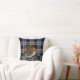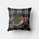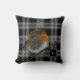 Coussin moderne avec Robin abstrait photo art d'oiseau sur bison blanc noir plaid. Vous pouvez ajouter votre propre monogramme pour personnaliser.