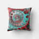 Une conception vibrante, colorée, turquoise et rouge psychédélique abstraite fractale tourbillon couvre cet oreiller brillant