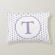 Design avant dispose d'un arrière - plan blanc à un motif de pois lavande. Le centre dispose d'un monogramme lavande personnalisable contre un arrière - plan blanc. Reverse présente un arrière - plan lavande à nommer affiché dans une police blanche et cursive. Conçu pour coordonner avec la collection de chambres à coucher Polka-Dot pour enfants. Disponible dans une variété de couleurs.