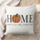 Ce coussin HOME avec tous les noms de famille est parfait pour votre décor d'automne. La conception de typographie simple et élégante comprend un libellé "Home" avec des noms de famille de scripts personnalisés élégants et un citrouille d'automne orange.