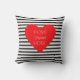 Grand coeur avec Home doux texte à la maison sur noir, argent et blanc rayé arrière - plan Jeter oreiller. Texte à l'avant seulement. Le texte peut être personnalisé.