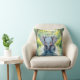 This throw pillow has a cute watercolor cartoon chibi ai illustration of a baby elephant drinking out of a lake while looking at his own reflection. Adorable for a child's bedroom or baby nursery. You can add child's name and birthday in the personalize area.