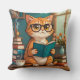Coussin Adorable Chat portant des lunettes Lecture d'un li