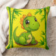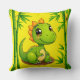 Coussin Adorable Dinosaure de Dessin Vert Au milieu des Pl