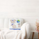 Ajoutez une touche mignonne à votre chambre à coucher ou à votre pépinière avec cet adorable oreiller à jetons de chiot. Le coussin a un chien maman avec un chiot bébé. Les deux chiens portent des arcs bleus et la mère chien porte un collier. Il y a aussi une maison de chien dans l'arrière - plan, un motif de point de croix, et un empreinte de patte de chien. Customisez le coussin avec le prénom de votre petite fille ou garçon.