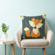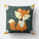 Adorable renard orange mignon flocons de neige et fleurs coussin bleu marine pour un petit garçon.