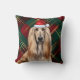 An Afghan Hound dog makes a cute Christmas pillow in his red Santa hat, then paired with a red, green and gold holiday plaid to brighten the pet lover's holiday home decor.