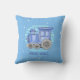 Coussin Ajouter le nom Steam Train Engine Baby Blue