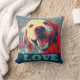 Ce coussin comporte un plan rapproché d'un chien de sourire de golden retriever, fait dans le style de pochoir de "espoir" avec des couleurs rouges, blanches et bleues, avec l'amour de mot.