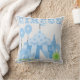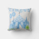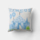 Blue Circus Fun coussin présente deux éléphants bleus, l'un dans un casquette de fête, une boule verte, des ballons bleus, un grand top rayé et pois de polka, et le texte qui dit "Circus" !