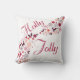 Oreiller de Noël mignon avec une bannière de joie de Noël et les mots Holly Jolly sur le devant. Dos coordonné, ajoutez le nom de votre famille, votre propre message ou laissez vide. Voir toute notre décoration de vacances dans notre magasin Zazzle !