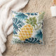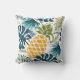 Coussin Ananas doré bleu palmier feuille feuillage blanc