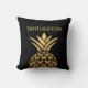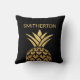 Ananas en or glittery élégant et tendance sur décorateur noir jetez un oreiller, personnalisé avec votre nom de famille.