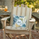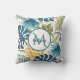 Une grande ananas tropicale dorée sur un motif de feuillage feuille de palmier bleu et vert. Fond blanc. Un cadre bleu et blanc avec espace et modèles pour votre nom et lettre monogramme. Parfait pour votre patio, jardin, jardin ou piscine !