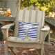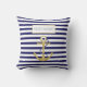 Ancrage en feuille d'or bleu marine rayures blanches nautiques coussin d'été jetez. Le point central de ce design nautique tendance est l'ancre dorée et votre nom sur un cadre blanc avec contour doré.
