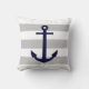 La Ancre Bleue de la Marine Sur les rayures grises et blanches Lancer l'oreiller va bien avec les thèmes nautiques ou neutres.