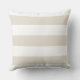 Un design élégant et chic d'oreiller carré accentue un motif côtier de larges rayures de cabane blanches avec une ancre de bateau bleu marine. La couleur de fond beige peut être personnalisée.