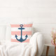 Le design élégant et chic de la coussin carré met à votre disposition une cabane à rayures de corail blanc et rose brun, motif rayé avec ancre de bateau bleu marine.  La couleur arrière - plan rose corail clair / rousse peut être customisée.