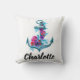 Coussin Ancre d'aquarelle florale marine personnalisée