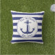 Coussin Ancre nautique Marine Blue Stripes Nom de famille